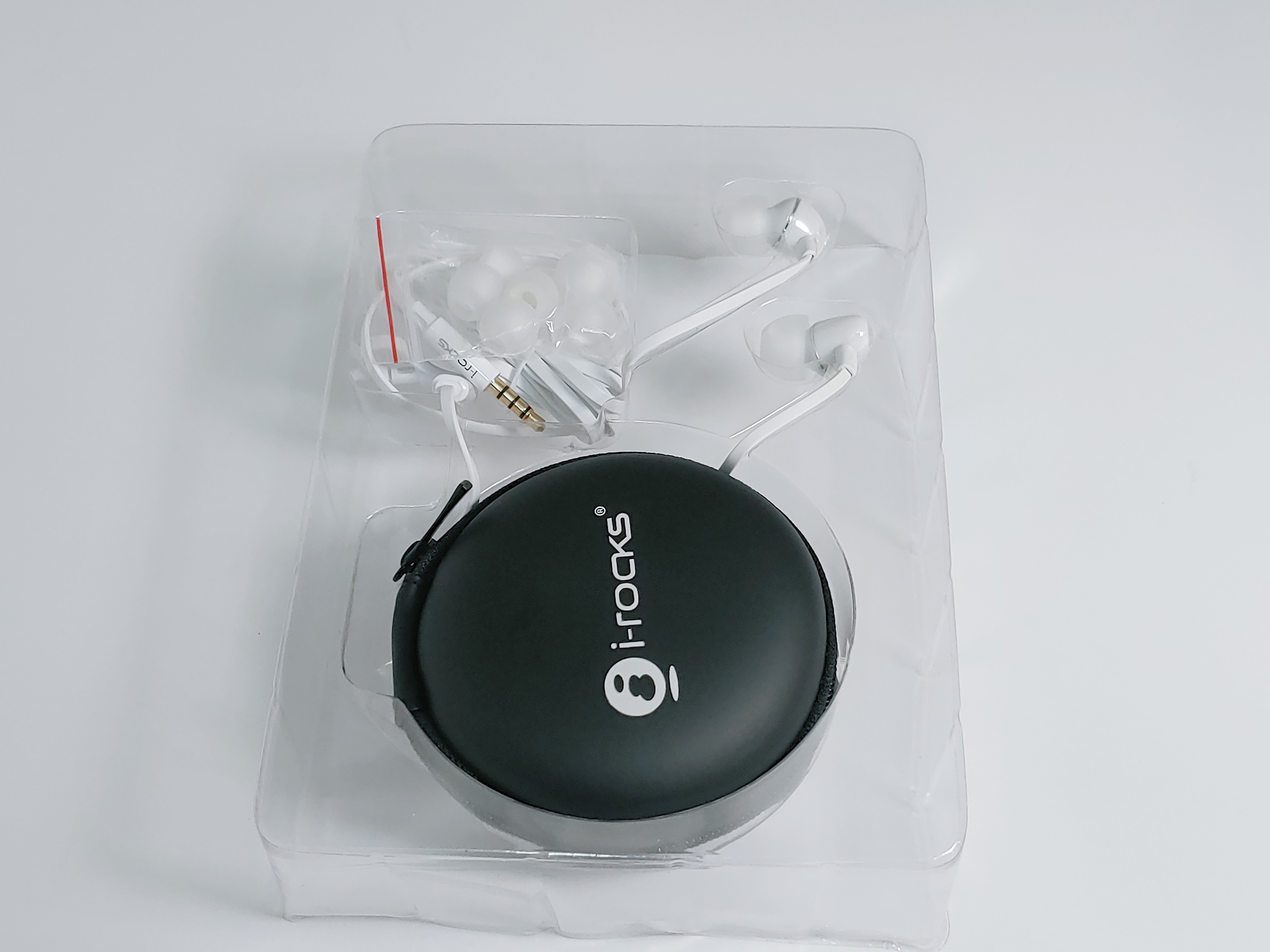I-Rock 세라믹 이어폰 A16 제품은 기본적인 종이박싱으로 되어있으며, 내부에는 구성품 이어폰, 이어팁 5쌍, 케이스가 동봉되어져 있습니다. 이어폰 케이스에는 I-Rock이라는 로고가 큼직막하게 딱 붙어 있는 것을 볼 수 있습니다.