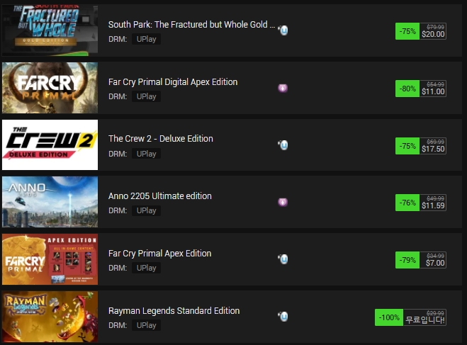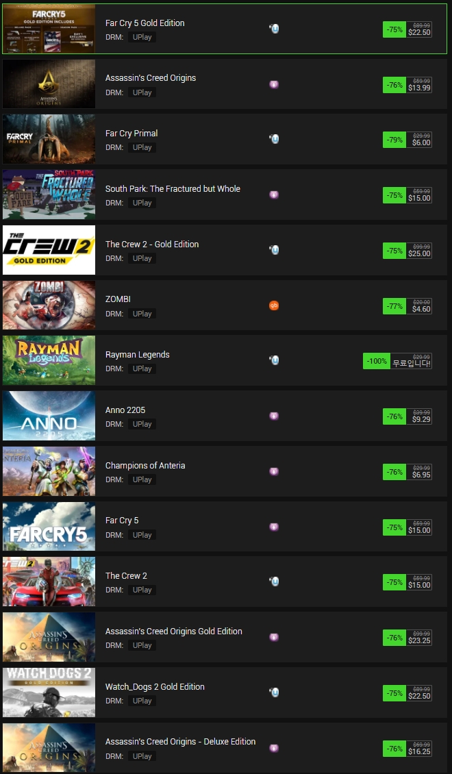 오늘의 리뷰는 4월 1째주 유비소프트 게임 세일 리스트 입니다.