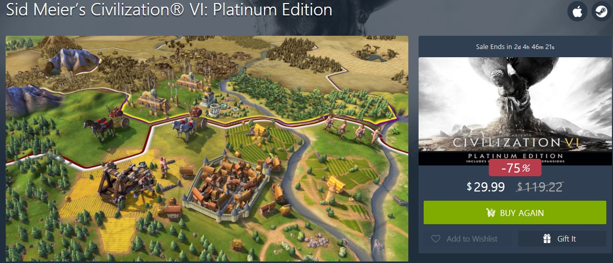 Sid Meier’s Civilization® VI: Platinum Edition가 역대 최저가를 갱신하여 내용을 알려드립니다.