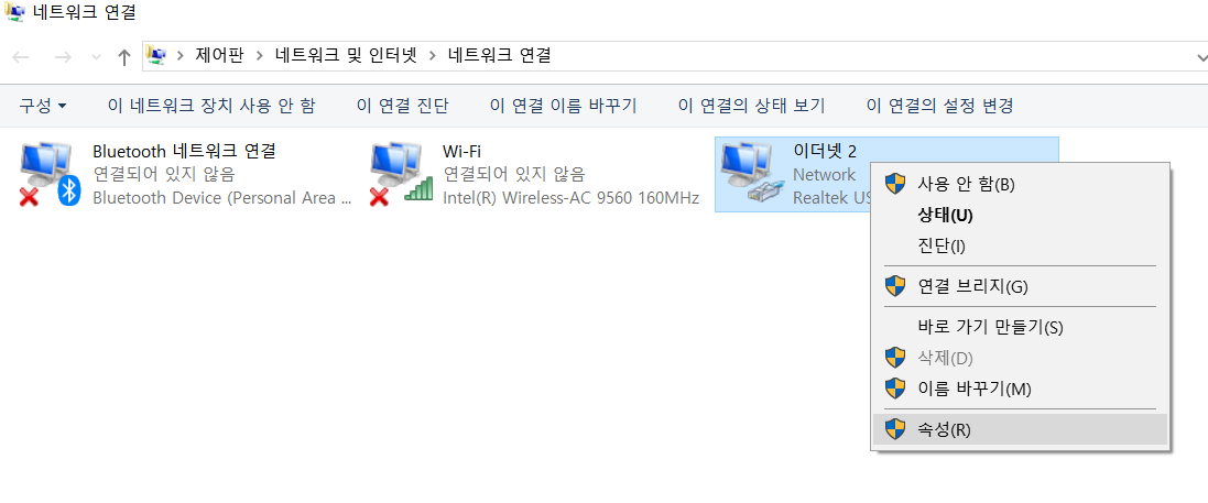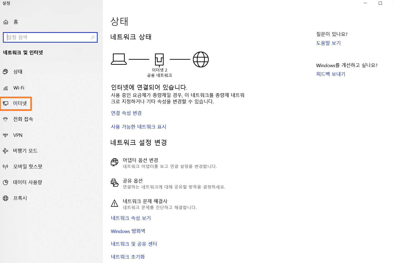 또한 TCP/IP의 설정이 변경되어 문제가 생길 수 있는데요.