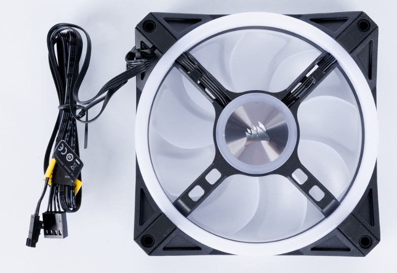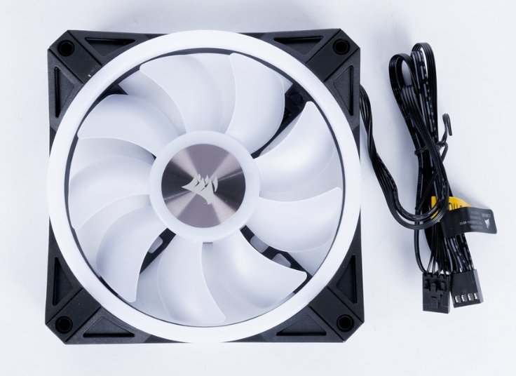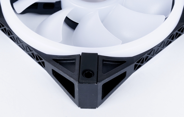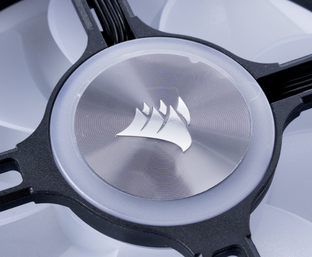 Corsair QL120 RGB FAN 제품의 기본 4핀으로 형성되어 있으며, 제품 내부에는 은빛으로된 커세어 로고가 외관에 자리잡고 있습니다. 각 사이드마다 나사 홈이 있으며, 커세어만의 독단적인 블레이드 팬 구성으로 손으로 살짝 돌려도 휙휙 하고 잘 돌아가는 것을 확인할 수 있습니다.