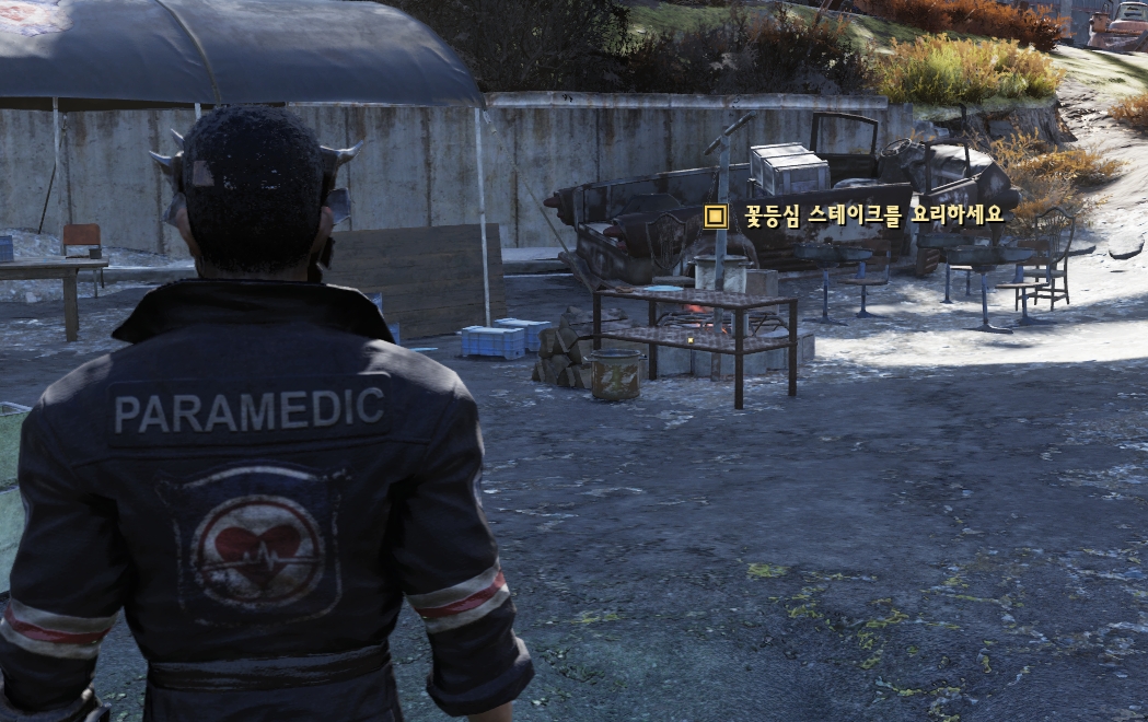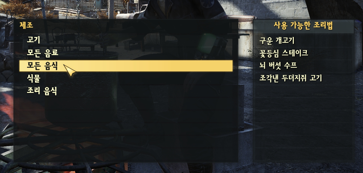 생존자 이야기를 획득 후 단말기를 통하여 요리 재료를 구한 후 요리를 해야합니다.(필요 물품 : 나무, 고기)