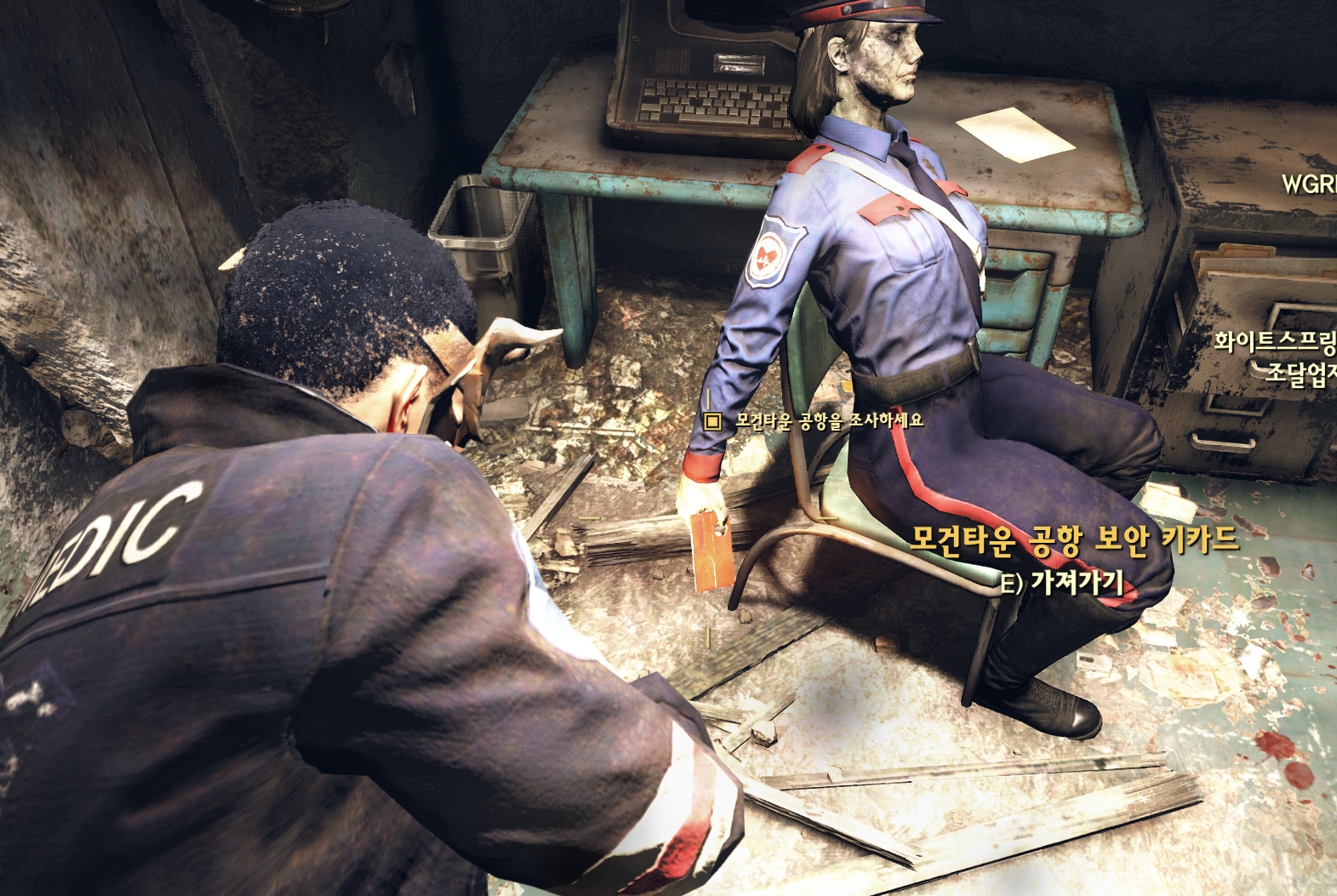 모건타운 공항 지하계단을 이용하여 보안요원의 보안 키카드를 획득 합니다.