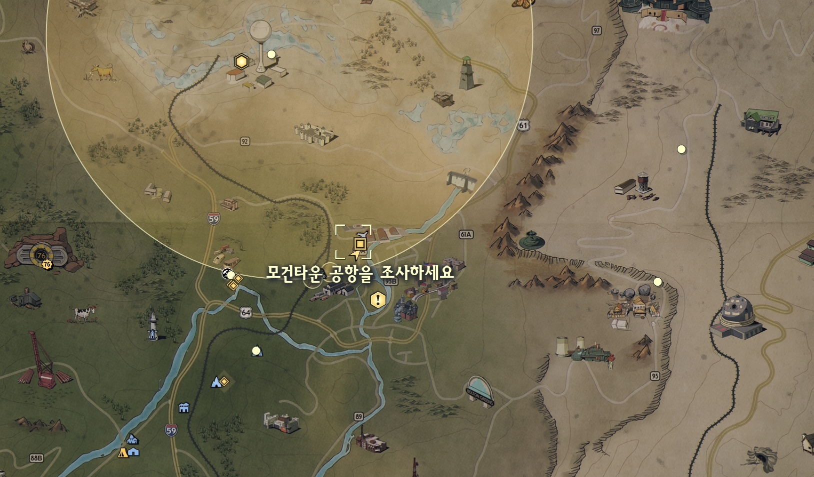Map의 중앙 공항이미지가 있는 모건타운 공항으로 갑니다. 이후 건물 내부로 들어갑니다. 스코비치(좀비)가 있으니 낮에 가주세요.