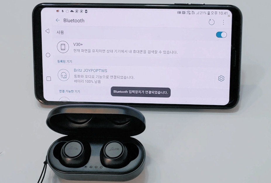BritzJOYPOPTW 제품을 최초 페어링 시 페어링 연결이 원활하지 않아 조금 불편함을 겪었습니다. 제품의 문제라기 보다는 제품의 블루투스 신호가 제대로 잡히지 않았던 것 같은데, 이 부분은 차후 PCB 납땜을 확인해봐야 할 것 같습니다.