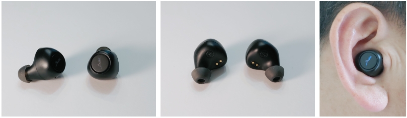 이어폰의 크기는 남성 엄지보다 작은 사이즈를 보여주며, 이어폰의 헤드 부분 또한 크지 않아 착용 시 외관이 매우 준수 합니다. 착용하였을때, 이어폰이 돌출되어 프랑켄슈타인처럼 보인다거나 그러한 부분은 없었습니다.