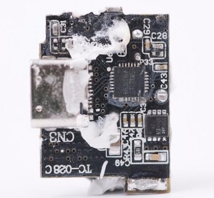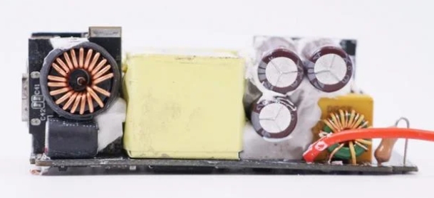 J.zao 65W 충전기 제품은 매우 질 낮은 PCB 납땜수준으로 확인되며, 발열이 발생하는 곳에는 실리콘을 듬뿍듬뿍 발라놓은것을 확인할 수 있습니다. 주관적인 생각으로는 극악스러운 납땜수준과 실리콘을 매우 많이 바른것은 생산 공장의 디테일이 매우 떨어지는 것을 확인 할 수 있습니다.