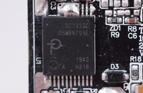 내부 발열을 써멀패드도 아닌 일반 저가형 구리판에 종이로 둘러쌓여 있었습니다. 내부의 전력 컨트롤러는 SC1933C / SC1936C라고 불리는 칩셋을 사용하였으며, 이는 출력이 IC 연결 작업을 거치지 않고 다이렉트로 협동하여 전력공급을 하기때문에 고효율식 전력을 제공할 수 있게 해줍니다.