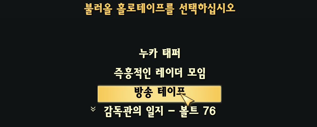 E) 사용 > R키 홀로테이프 불러오기 > 방송 테이프 넣기