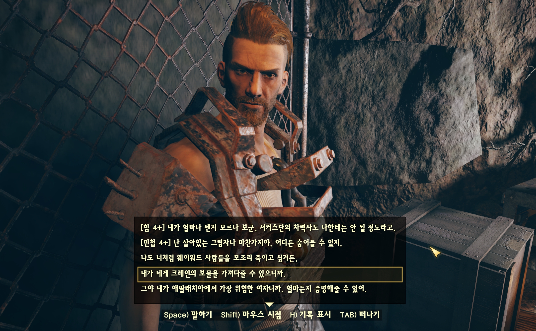 그 다음 대사에서 너에게 크레인의 보물을 줄 수 있다고 꼭 말하셔야 합니다.