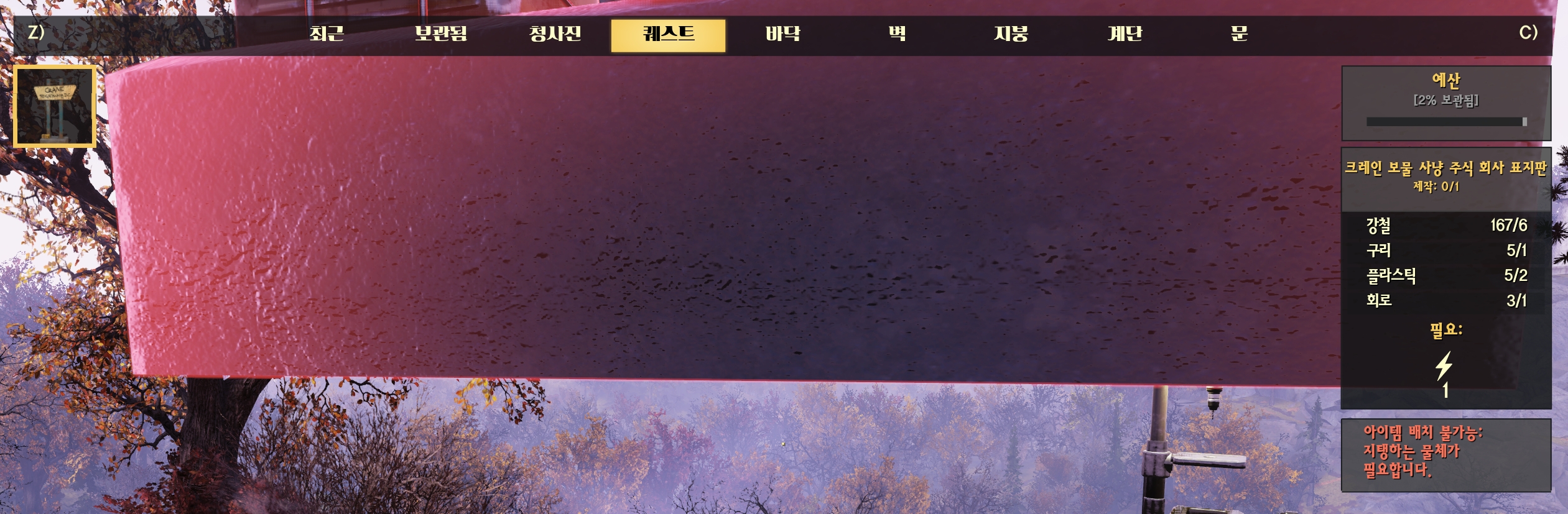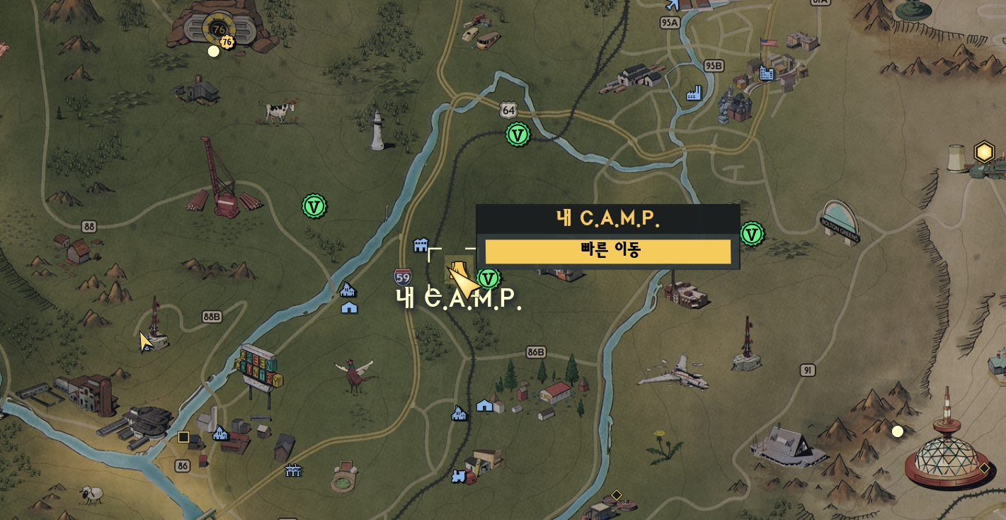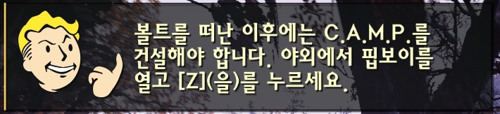 볼트76 처음시작한 곳을 떠나게 되면 자신만의 캠프(하우징)을 지어야하는데요. 주변 평지나 건물이 없는 곳에 캠프를 설치해주시면 됩니다.