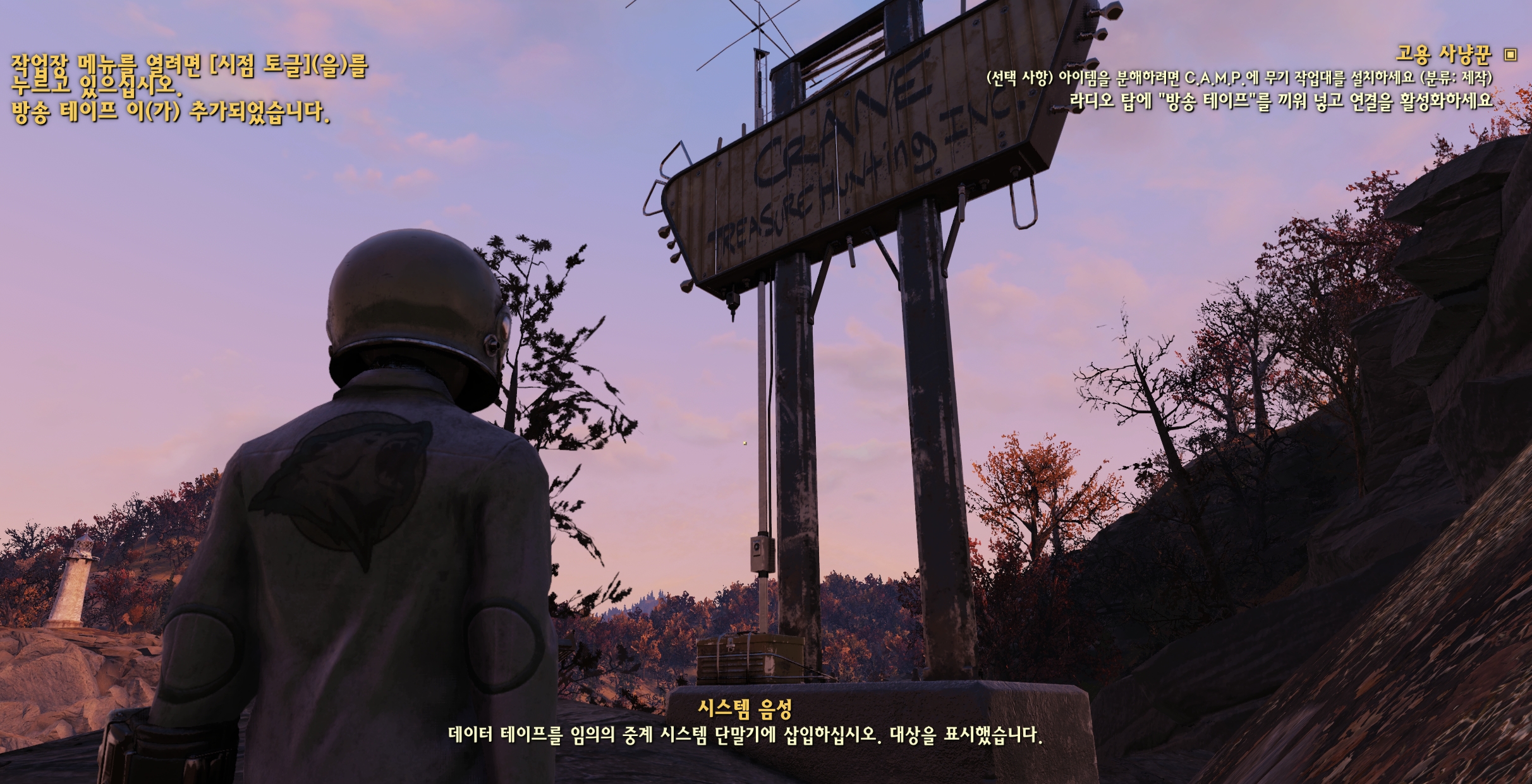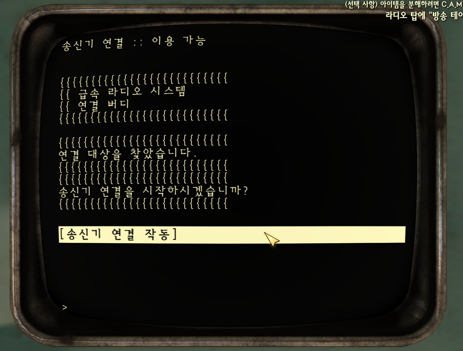 이후 퀘스트가 변경되는데, 라디오 탑 방송테이프를 넣고 연결을 활성화 하여야 합니다.
