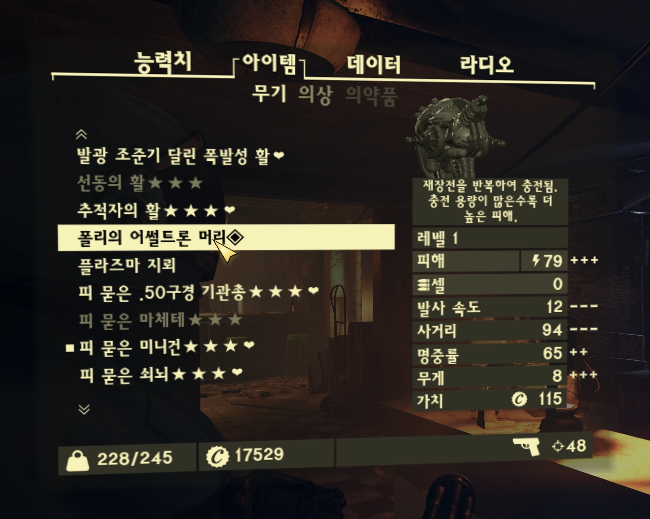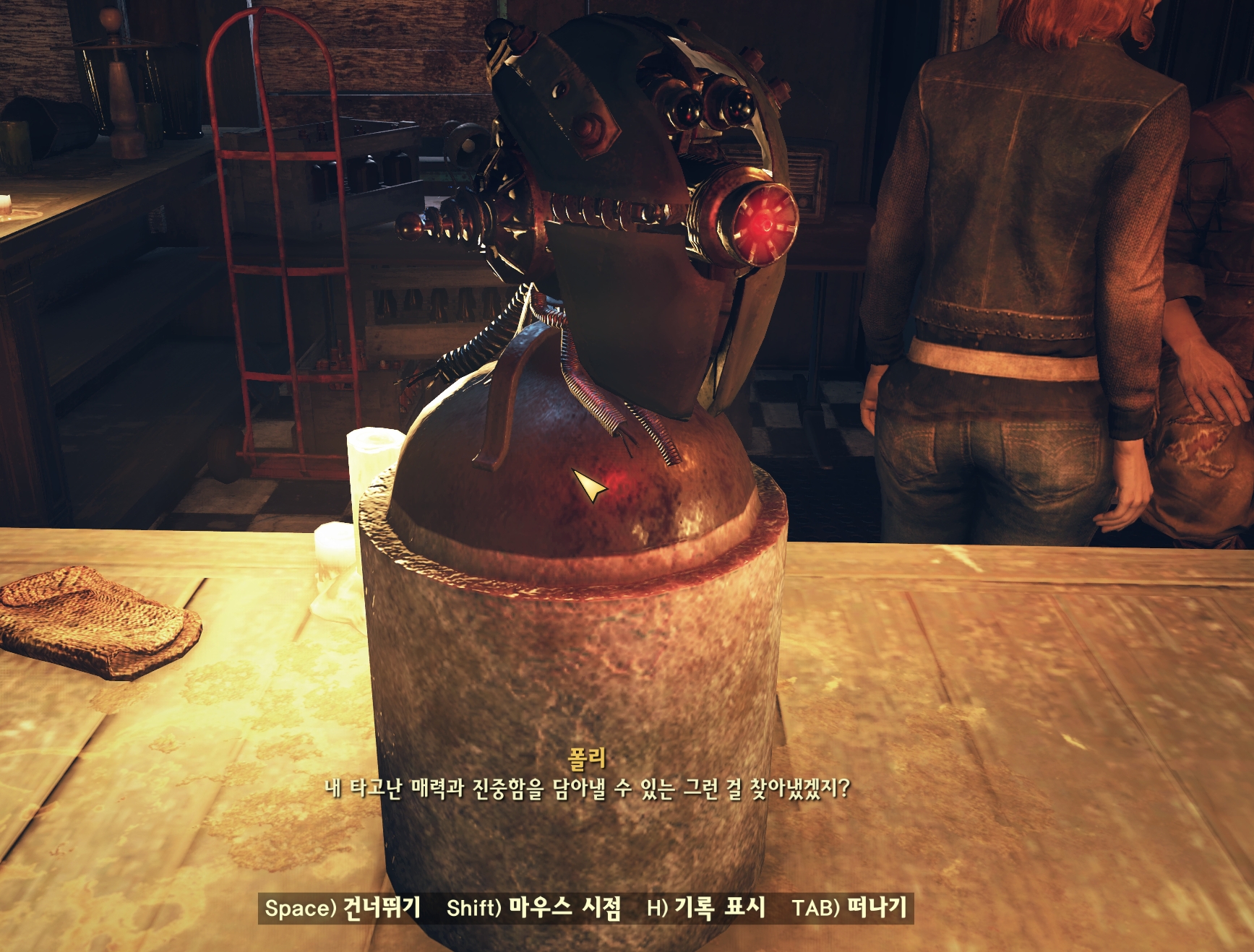 만약 본 무기를 사용하여 스코비치를 처리하셨다면 여주인과 대화시에는 꼭 폴리를 장착하시고 대화하셔야 퀘스트 진행이 됩니다.