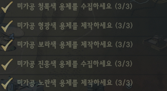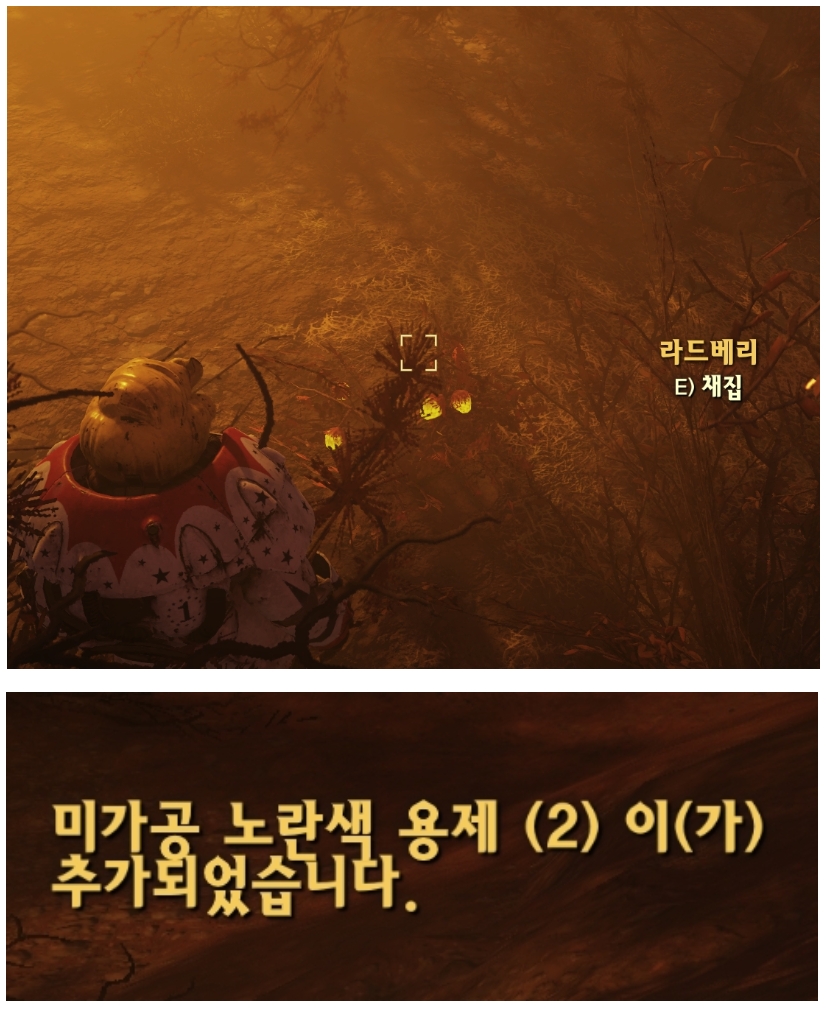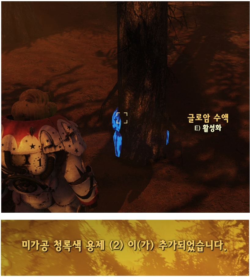 우리가 해야할 주간 퀘스트는 미가공된 색깔 별 용제를 구해야하는데 저렇게 핵 미사일이 투하된 지점에 가서 식물을 채집해주시면 됩니다.