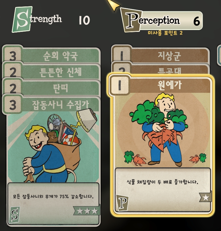 버섯 채집에서 필요한 준비물이 있습니다. 채집 갯수량을 늘려주는 카드가 있는데, 스페셜 카드 중 인지력에 속한 원예가 카드 드입니다.