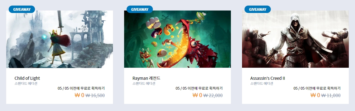 Ubisoft에서 지난번 무료로 배포되었던 3가지 게임을 재배포를 하였습니다.