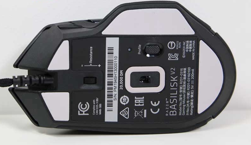 Razer Basilisk V2의 케이블은 기본적으로 슬리빙 케이블을 채택하였으며, 굉장히 유연하며, 많은 움직임에도 부드럽게 움직여줍니다. 또한 마우스 미끄럼을 방지해주는 스케이트는 밑부분 면적의 15~20%정도로 매우 알맞은 저항성을 제공해줍니다.