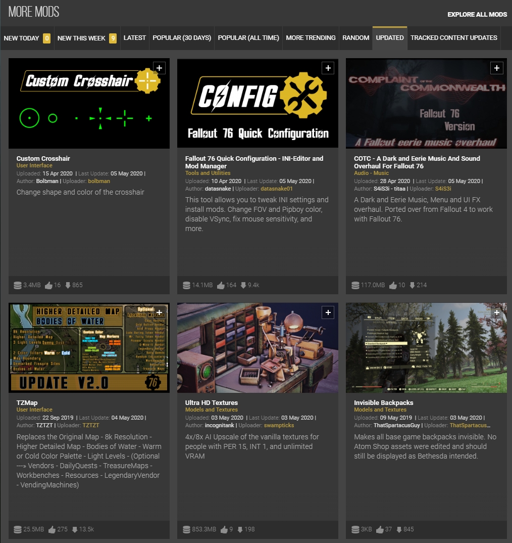 회원가입 완료 후 Fallout76 Mode를 찾아보면 매우 많은 모드를 확인할 수 있는데, 개인적으로 추천드리고 싶은 몇가지를 선정하자면 아래와 같습니다.