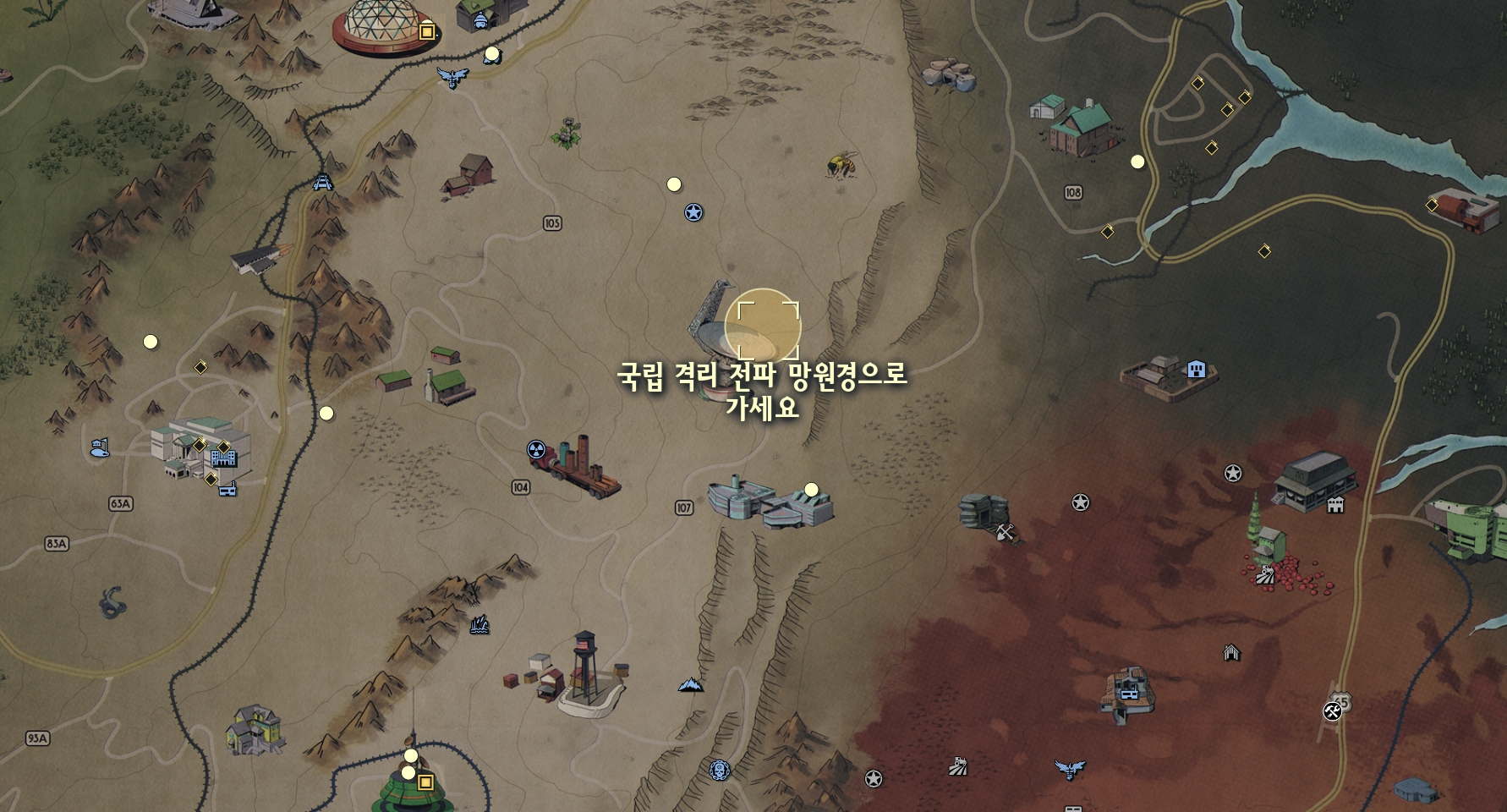 맵의 중앙부분의 국립격리 전파 망원경으로 이동하여 중계기를 설치 해줍니다.