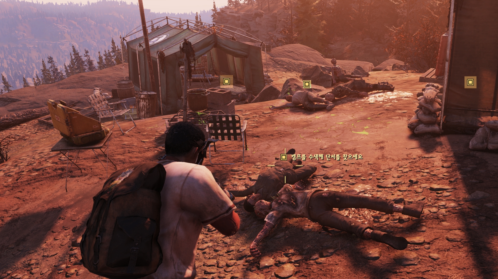 관측캠프에서 시체에서 자료를 수집해야 합니다. 각 시체마다 조사를 진행해주세요.