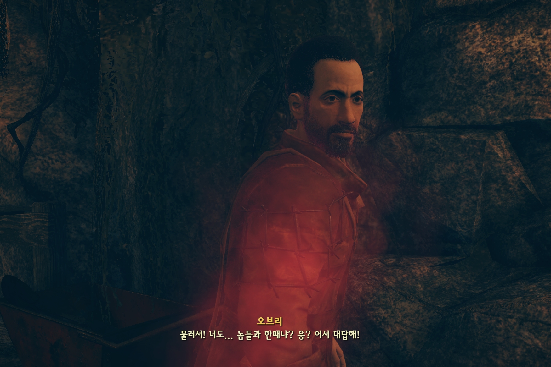 관측캠프 주변에서 오브리를 찾아주세요. 대화내용을 좋게 이야기하다가 도와주지 않으면 너도 좀비로 만들어주겠어 라는 형태로 이야기를 이어나가시면 좋습니다.