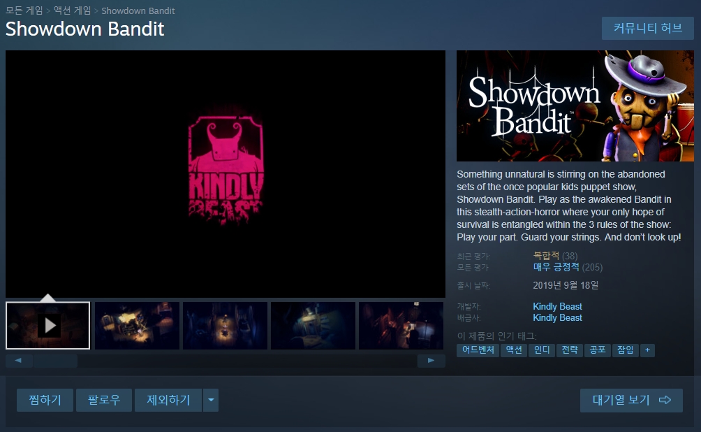 오늘의 리뷰는 스팀 무료게임 Showdown Bandit 입니다.