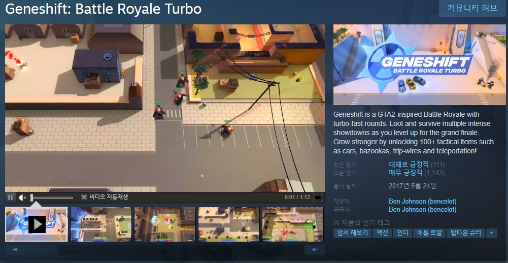 스팀에서 무료게임을 배포하였습니다. 게임의 이름은 Steam Geneshift: Battle Royale Turbo 입니다.