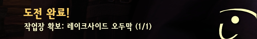 맵의 중앙에서 8시방향에 위치한 레이크사이드 오두막에서 작업대를 점령해주시면 됩니다. 작업대 점령시 25 병뚜껑이 필요하며, 주변몹이 있을경우 점령이 되지 않습니다. 따라서 작업장 점령 전 주변 몬스터를 꼭 처치하셔야 합니다.