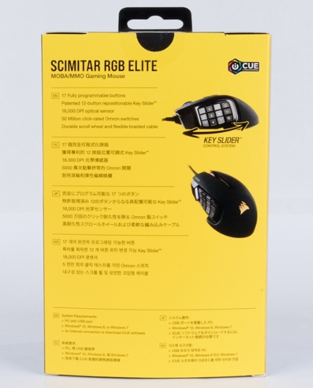 게이밍 기어의 명가 Corsair 입니다. 초기 DRAM 및 DIMM 메모리 회사로 시작하여 현재는 PC 구성품 중 메인보드와 그래픽카드를 제외한 거의 모든 제품을 제작 및 출시하고 있습니다. 또한 제품의 퀄리티 또한 상당히 우수한 편이라 많은 사람들에게 사랑을 받고 있습니다. Corsair에서 출시한 Corsair SCIMITAR RGB ELITE 제품은 뛰어난 성능의 센서, 스위치를 사용하였고, 마우스의 폼팩터의 정형화된 틀에서 조금 벗어나 게이머 및 코딩 사용자에게 뛰어난 부분적 H/W 메크로를 지원합니다. 이로인하여 게이머에게는 보다 편한 게임플레이를 그리고 프로그래머에게는 적응만 한다면 이전보다 시간대비 업무 효율이 높아질 것으로 생각 합니다. 오늘은 Corsair SCIMITAR RGB ELITE 제품에 대해서 자세히 리뷰를 해보려고 합니다.