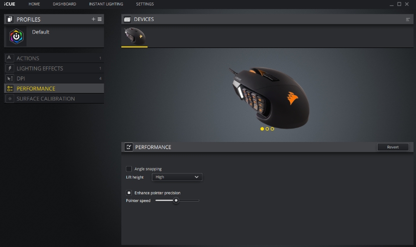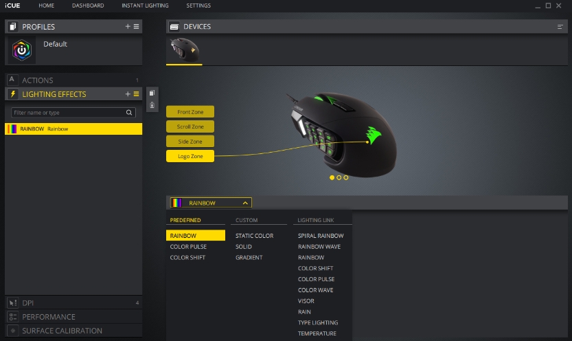 SW를 통하여 마우스의 프로파일 설정 및 RGB, LOD 등 다양한 설정을 하실 수 있습니다.