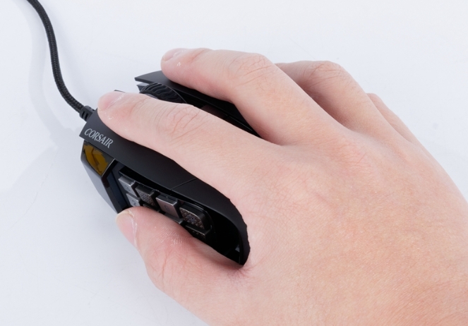 특히 FPS 게임을 플레이하다보면 빠르게 스위칭을 하게되는데, 이때 엄지쪽 살이 찝히는 경우가 있습니다. Corsair SCIMITAR RGB ELITE 마우스는 마우스의 크기가 제법 있기 때문에 찝히는 현상을 보기 어렵습니다.