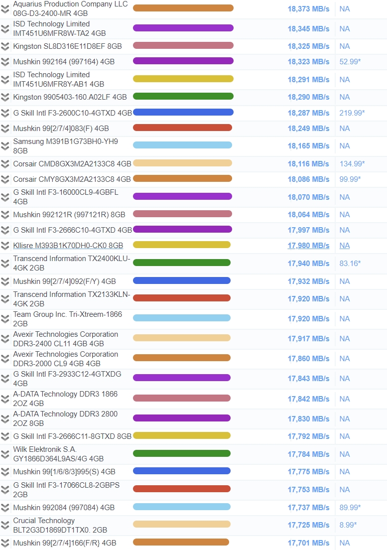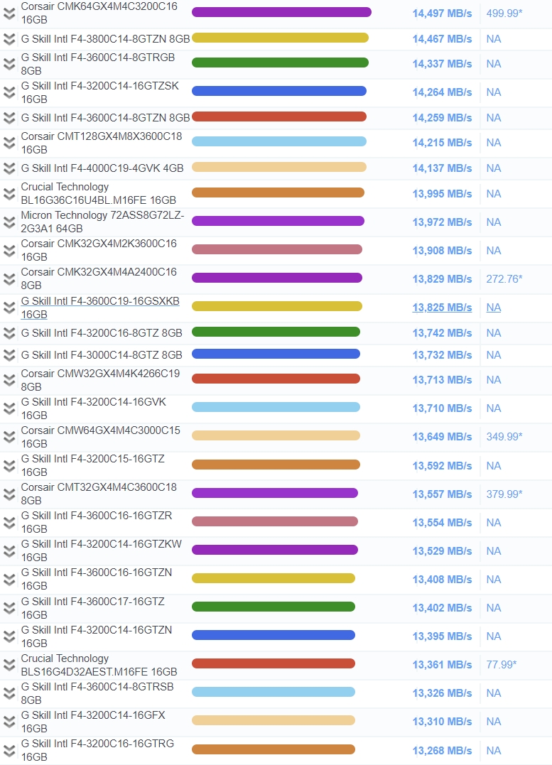 ※ 본 순위는 각 플랫폼(AMD, INTEL)에 따른 RAM 읽기 속도위주의 랭킹입니다. 신뢰성, 컨트롤러 등 배제된 부분입니다.