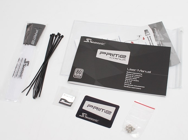 SEASONIC PRIME 850W TITANIUM 제품은 매우 고급스러운 느낌을 들게해주는 박싱으로 되어 있습니다. 높은 가격대를 형성하고 있는 티타늄 제품인만큼 PSU는 극세사 재질로 포장되어 있으며, 케이블도 부직포로 된 재질로 포장되어져 있습니다. 기본 박싱 구성 용품으로는, 케이블, PSU, 설명서, 케이블타이, 스티커, 나사 등이 동봉되어 있습니다.