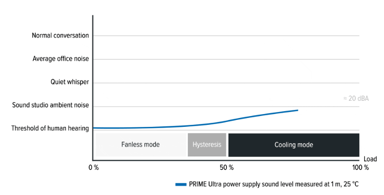 | PRIME 티타늄 시리즈는 50% 시스템 부하에서 94%의 효율을 보여주는 가장 높은 수준의 PSU 입니다. | 사이버네틱스 등급 배찌는 91% ~ 94%로 PSU가 정상 동작하는 것을 증명하는 것입니다. 또한 대기중에서는 0.15% 미만의 전력을 소비합니다. | 전원 공급기의 노이즈 출력이 매우 낮습니다. 특히 이 제품은 20db 미만으로 유지되기 때문에 노이즈 레벨 A++ 등급을 받은 제품 입니다. |