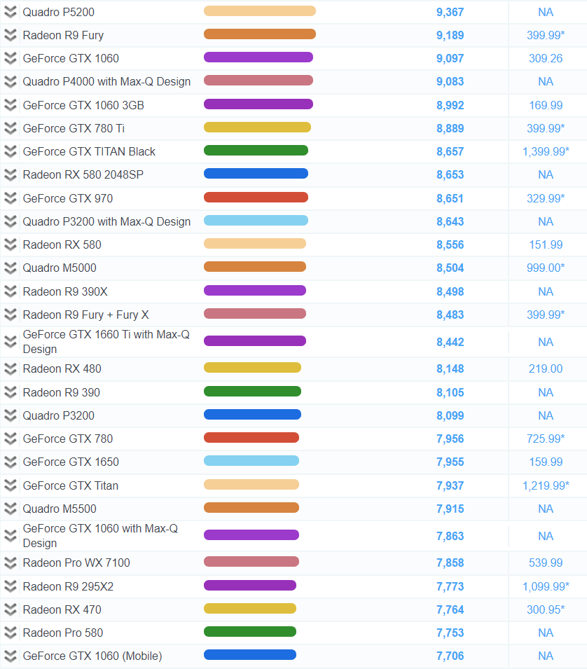 Average GPU(3D Mark) Mark 점수 기반 랭킹 순