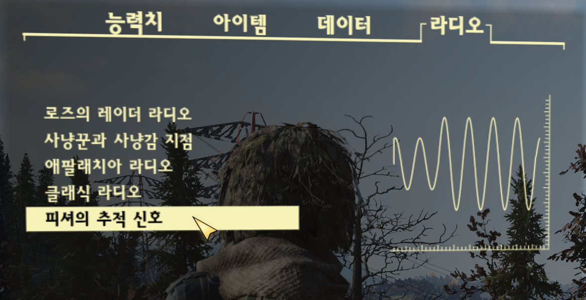 피셔의 추적 신호의 라디오를 맞춰야 합니다. 상태창(I) > 라디오 > 피셔의 추적 신호로 맞춰주시기 바랍니다.