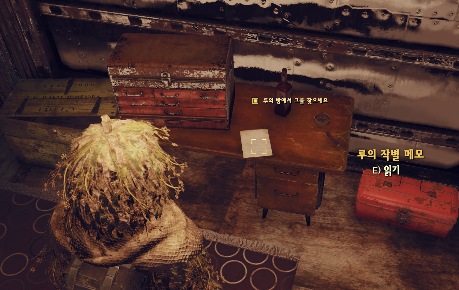 맵의 12시에 있는 크레이터에서 지하로 내려가시면 루의 작별 메모를 확인하실 수 있습니다.