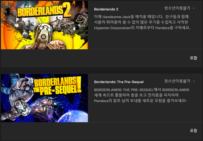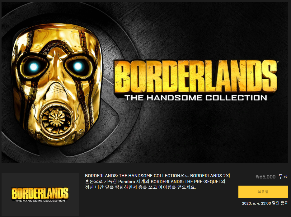 에픽게임즈의 행보가 매섭습니다. 벌써 몇주째 AAA급 타이틀 게임을 굉장히 많이 무료로 배포하고 있습니다. 저번주에는 문명6을 풀었고 이번주에는 보더랜드 핸썸 컬렉션을 풀었습니다.