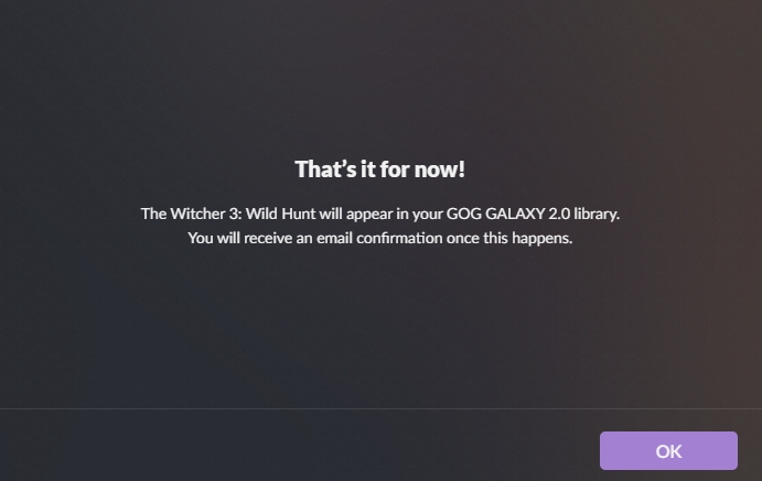 I’m eligible for a free copy of The Witcher 3: Wild Hunt on GOG.COM, but I don’t see any information about it in GOG GALAXY 2.0. What should I do? An update to the app is needed, so please make sur...