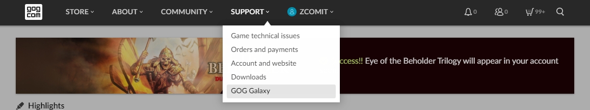 | SUPPORT > GOG Galaxy 런처를 설치해줍니다. |
