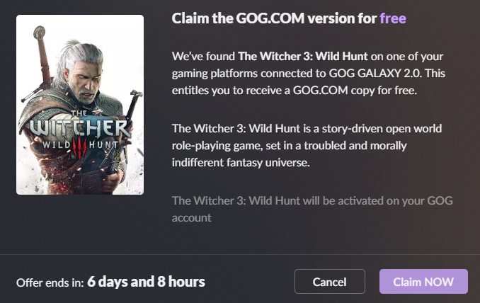 FAQ Claim a free copy of The Witcher 3: Wild Hunt via GOG GALAXY 2.0