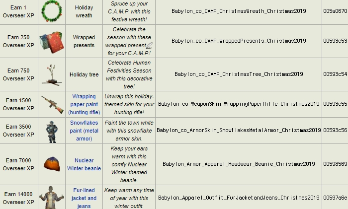 핵겨울에서는 매 큰 행사때마다 추가적인 한정 스킨을 지급하는데, 이 아이템들은 해당 시즌에만 받을 수 있습니다. 하지만 지금 버그인지 모르겠으나 도전 리스트에서는 생존자에 대한 아이템만 지급해야하는데, 크리스마스와 할로윈까지 추가적으로 지급되고 있습니다.
