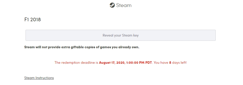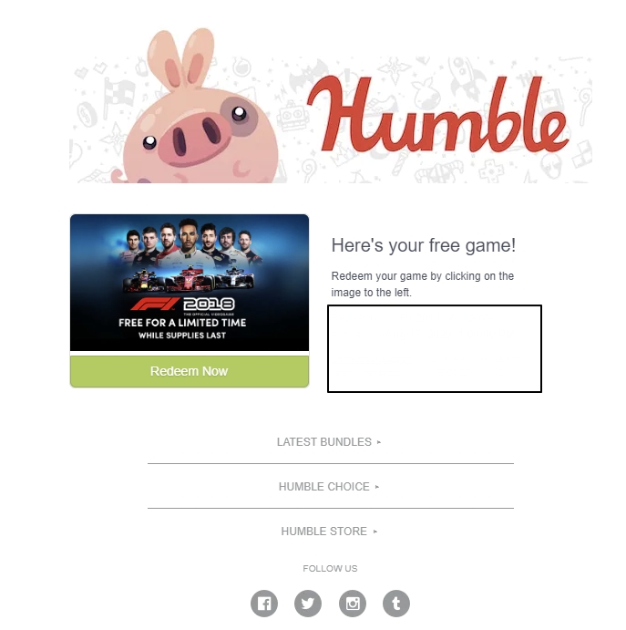 >Humblebundle F1 2018 스팀 키 발급방법<