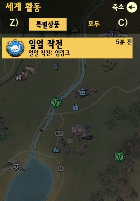 | 미니맵을 켜시면 하단 왼쪽에 "일일 작전" 이라고 세계 활동이 뜹니다. |