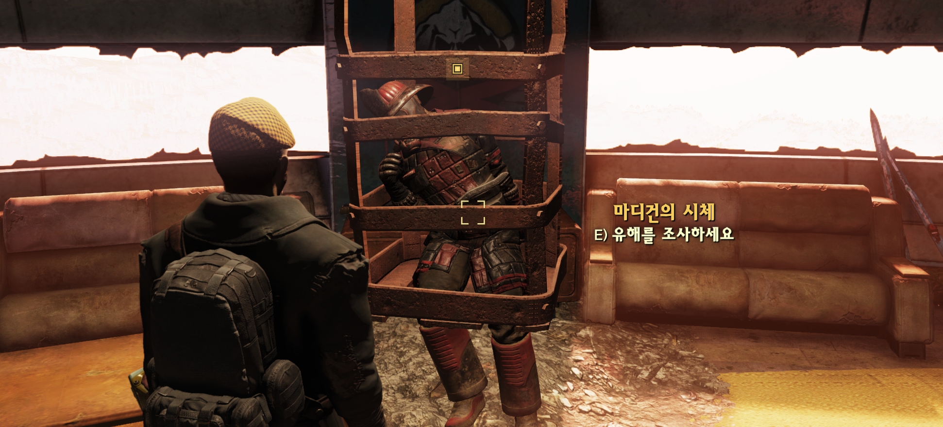 | 맵의 중앙에 위치한 "탑 오브 더 월드"로 이동해주세요. 그리고 마디건의 흔적을 따르세요 엘레베이터를 타고 3층으로 이동하여 마디건의 시체를 조사해주세요. |