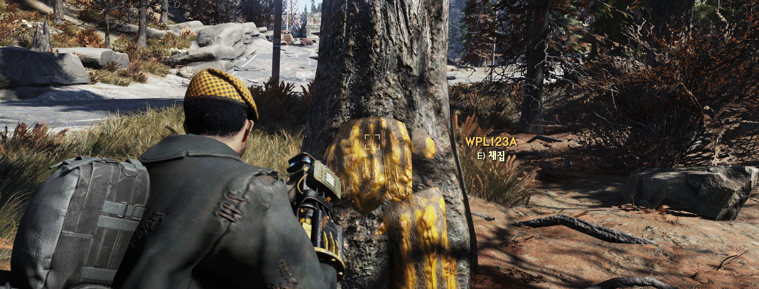 | 발광송진은 맵 중앙에 위치한 화이트스프링 약간 뒤쪽에서 소나무가 많이 보이는데, 그곳에서 채집해주세요! |