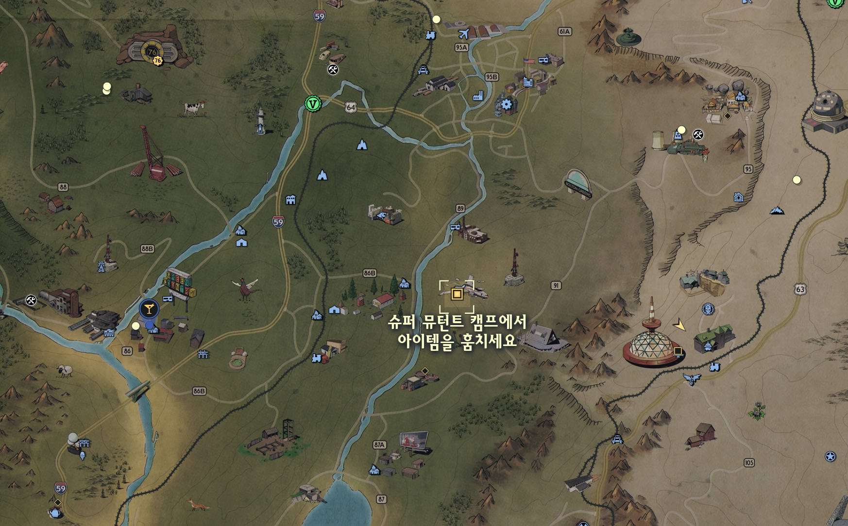 | 맵 중앙에 위치한 "호라이즌 레스트" 로 이동해주세요 제일 꼭대기에서 상자를 발견하시고 슈퍼뮤턴트의 아이템을 훔치세요. |
