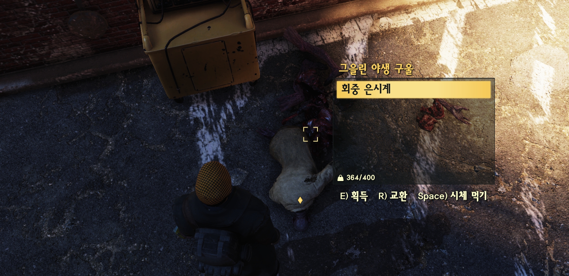 | 슈퍼뮤턴트 캠프에서 아이템을 훔치세요. |