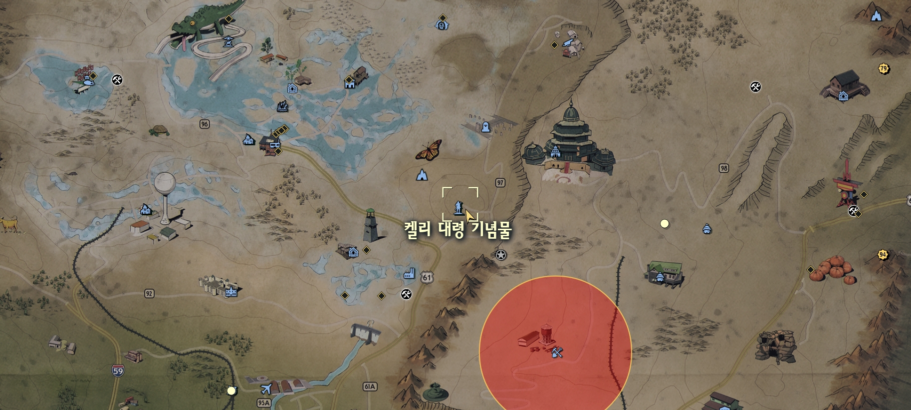 | 맵 12시에 위치한 "캘리 대령 기념물"에 가시면 라드스텍 무리를 확인하실 수 있습니다. 잡으셔서 고기를 획득해주세요 랜덤 리스폰이기때문에, 세션을 변경하시면서 찾아주시면 더욱 빠릅니다. |