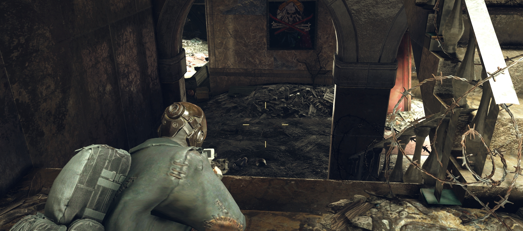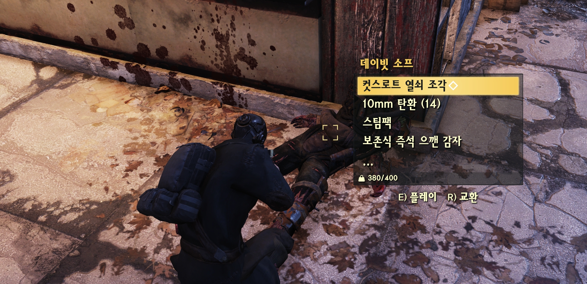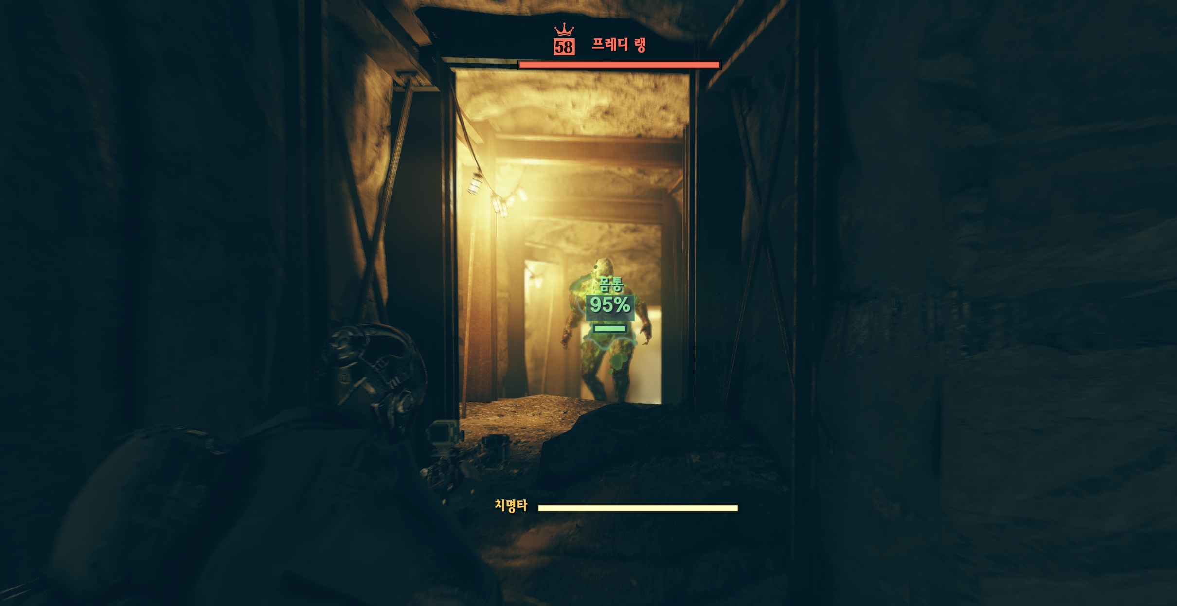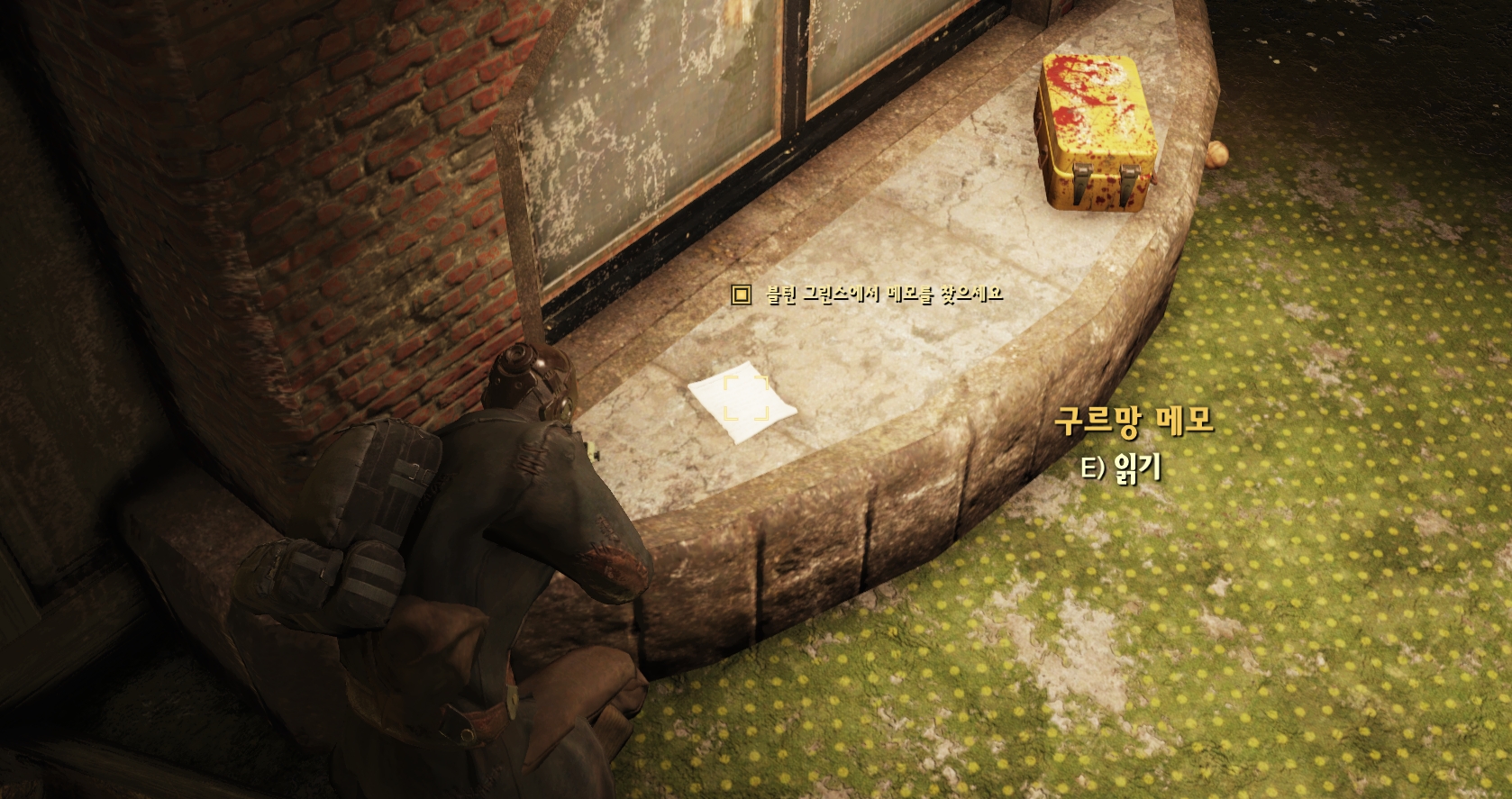 | 밖으로 이동하지 마시고, 단말기가 있는 내부에서 강도단의 열쇠를 획득해야 합니다. 강도단의 열쇠는 "프래디 랭" 이라는 구울을 잡으시면 획득하실 수 있습니다. |